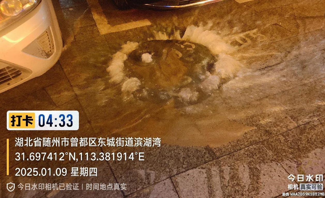 1月9日凌晨4時(shí),隨州水務(wù)熱線電話驟然響起?!盀I湖灣小區(qū)門口水管破裂,水一直在往外冒!”電話那頭,群眾焦急的聲音傳來。這通熱線,如同戰(zhàn)斗的沖鋒號,城市供水公司運(yùn)維中心工作人員迅速響應(yīng),在接到指令的第一時(shí)間,便迎著刺骨的寒風(fēng)奔赴現(xiàn)場。
