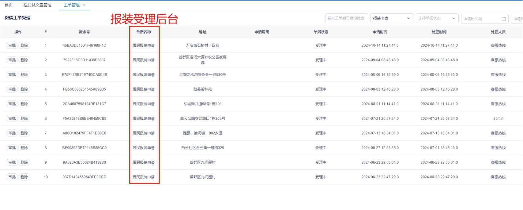 (1)水務(wù)集團(tuán)服務(wù)后臺(tái)操作截圖