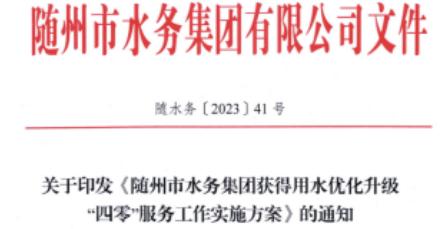 2.關(guān)于印發(fā)《隨州市水務(wù)集團(tuán)獲得用水優(yōu)化升級(jí)“四零”服務(wù)工作實(shí)施方案》的通知