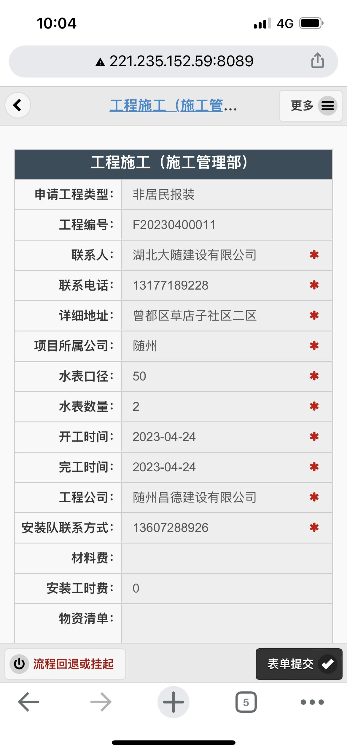 二、應用案例及實際操作界面截圖(包含用水報裝、現(xiàn)場勘查、預算方案、工程施工、驗收通水、客戶回訪等功能)