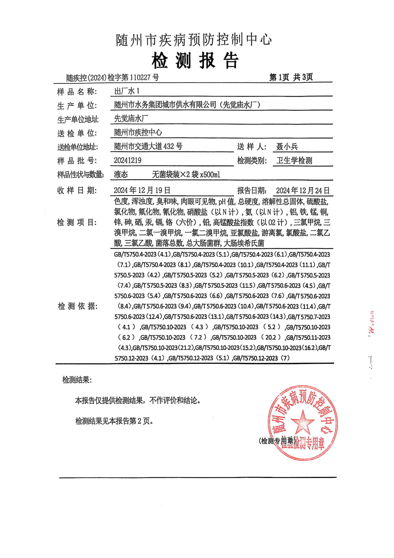 城市供水出廠水水質(zhì)檢測報(bào)告
