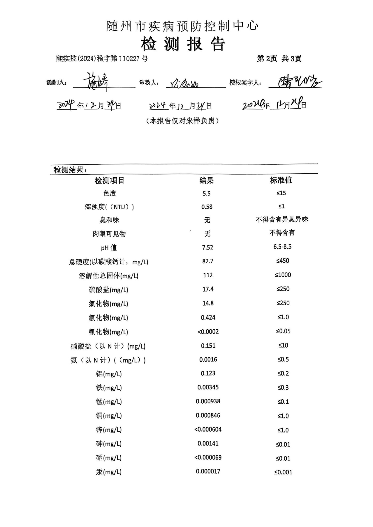 二、我公司在水質(zhì)管理上嚴(yán)格執(zhí)行兩級管理、三級檢測制度,出廠水水質(zhì)均符合國家《生活飲用水衛(wèi)生標(biāo)準(zhǔn)》GB5749-2022的要求,請廣大用戶放心使用。