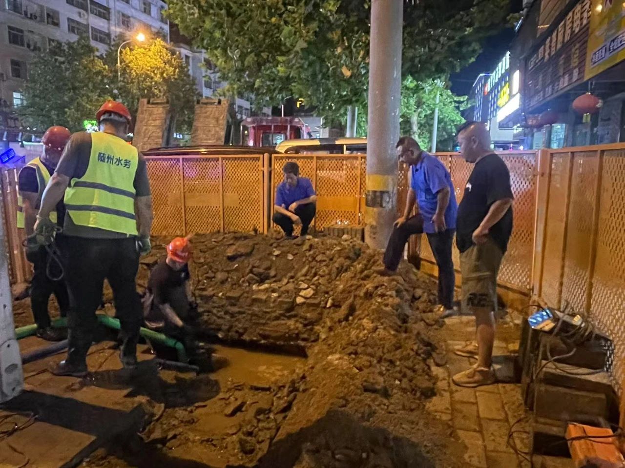 “管道早一分鐘搶修好,市民就早一分鐘恢復用水。沒有條件創(chuàng)造條件也要上!”針對現(xiàn)場情況,周新和他的“黨員突擊隊”隊員們憑借多年來積累的豐富經(jīng)驗,制定了靈活有效的搶修方案。周新身體力行,突擊隊員們分工協(xié)作,搶修工作有條不紊地展開:關閉閥門、設置圍擋、清除覆土、查找漏點、抽排積水、修補管道、試壓通水……